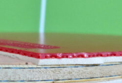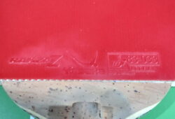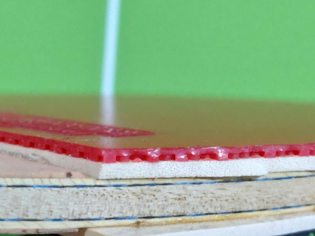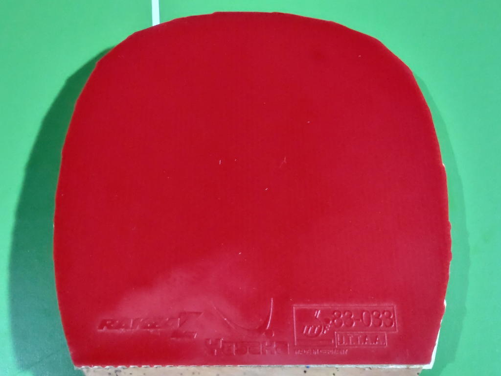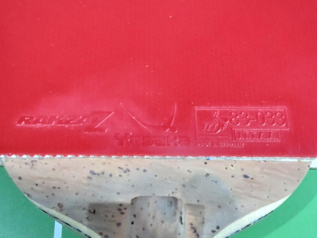 スポンジは白系で気泡の粗いタイプです ラクザZは白系でエキストラハードはオレンジ系とカラーで判別することが可能です シートの粘着は中国系の様なタイプではなく、うっすらと帯びたタイプですね なので粘着力を活かして擦って強い回転を生み出す というよりは強くインパクトしてシートに掴ませて回転をかけるタイプのラバーです 粘着がサポートして回転力を挙げているタイプのラバーですね 反発力は強く、軽い食い込みの後弾き出すので、回転をかける際に強い打球で食い込ませる必要のあるラバーです 面白い点としては高硬度バージョンのエキストラハードと比較すると差異が少なく、こちらの方が硬度を落としている割に硬さと弾きの強さが出ている点ですね 差が出る点としては強く打球した時で、ラクザZの方がフルスイング時の時にグイっとシートに掴む感覚が出ている印象です 弾道は直線がやや強い傾向にありますが弧線が作りづらいような極端な飛び出しではないですね これはエキストラハードと共通しています
