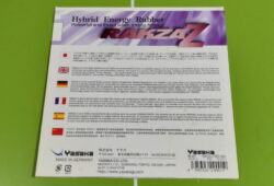 パッケージはラクザ系は似たようなデザインですね 薄紫系のカラーリングとなっています ラバーの名前が大きくプリントされているので、判別しやすいラバーです このラバーと高硬度スポンジバージョンである「エキストラハード」の2種類がラインナップされています スポンジ硬度はラクザZが47~52° エキストラハードが52~57°です 打球感や重量に大幅な差が無い点が特徴的ですね ラクザZ自体が硬質で反発力のある打球感です 口述しますが、強くインパクトした時に差が出ている印象ですね